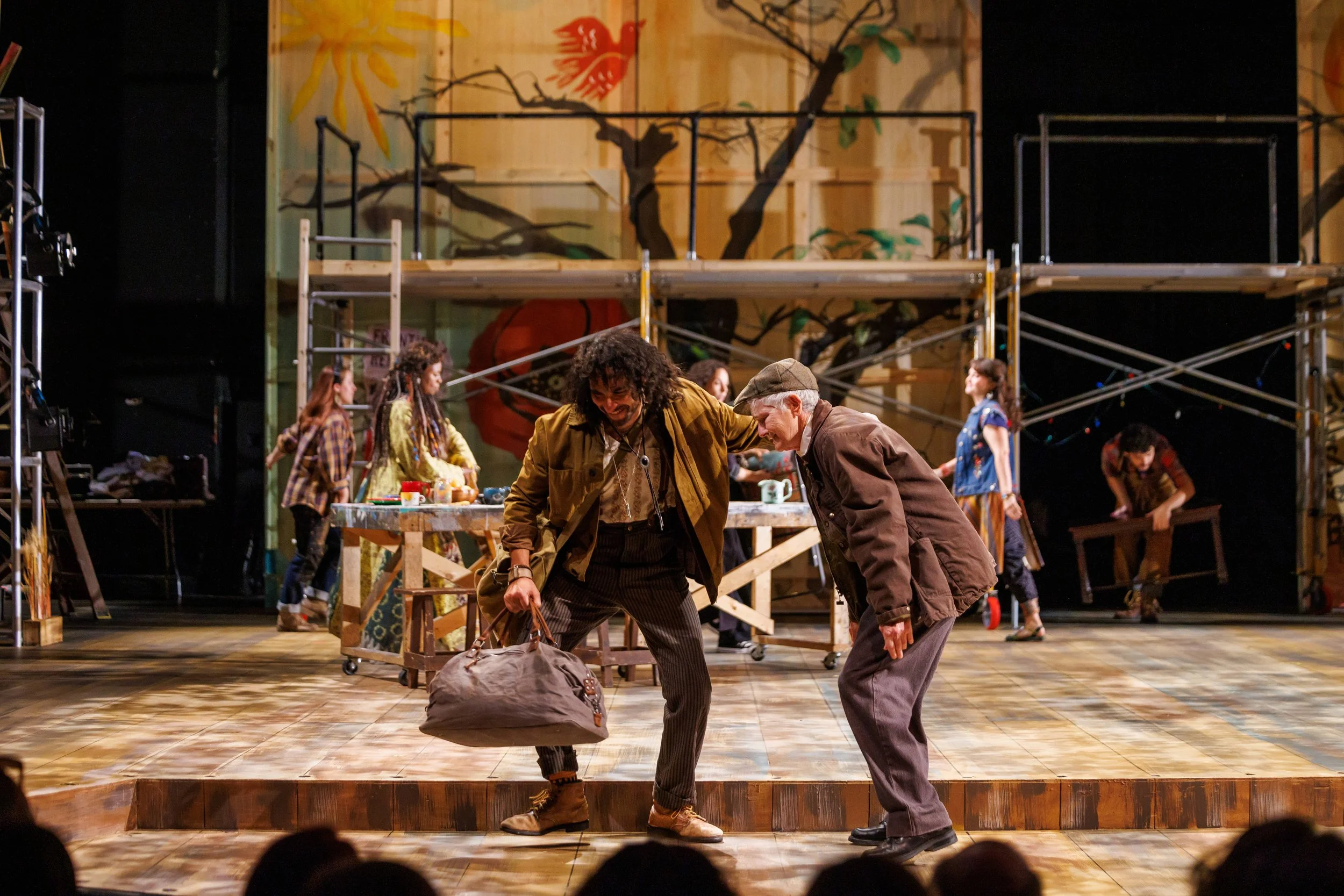 Romeo (Krosby Roza) and the Friar (Chauncy Thomas) discuss his marriage to Juliet. Behind them we can see the flower basket used in the gathering of poison flowers for Juliet's poison later. Photos by Peter Ringenberg.