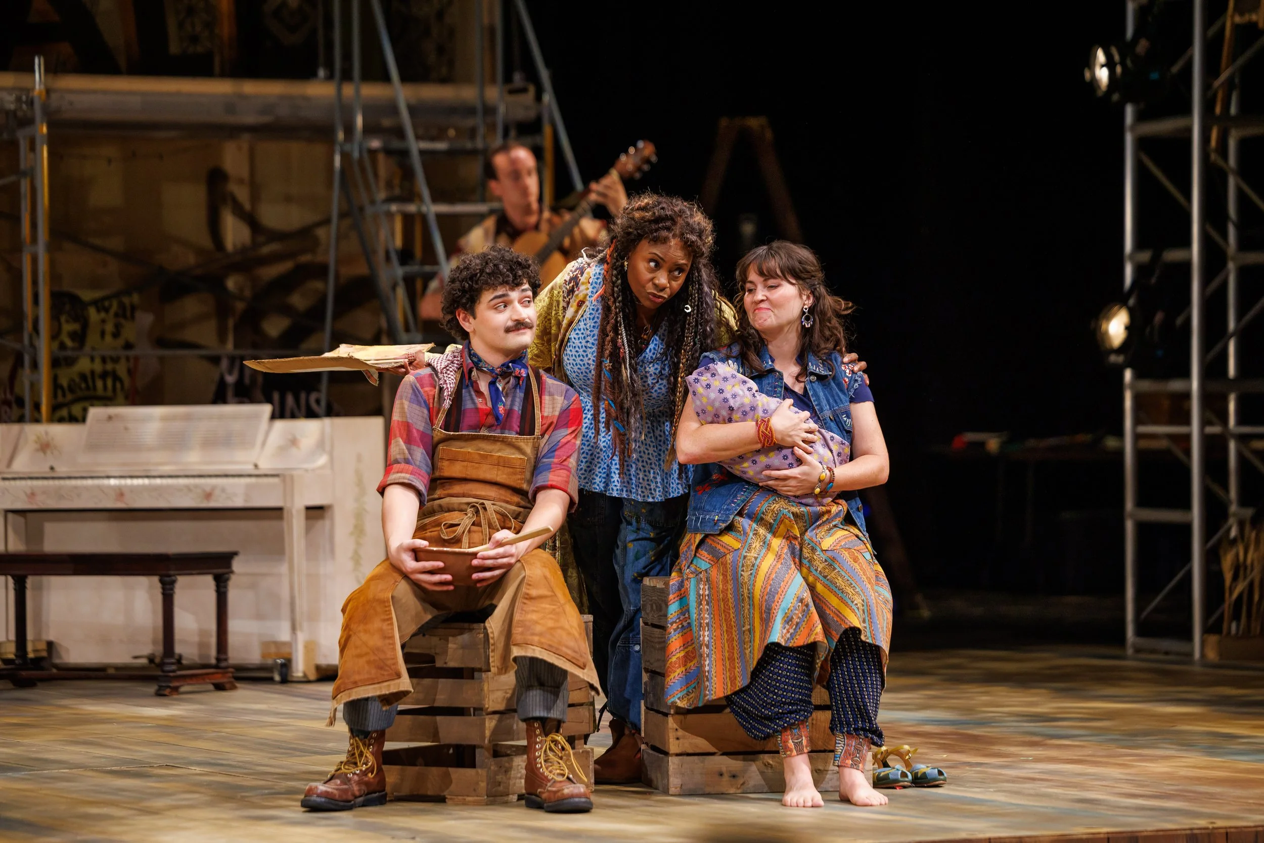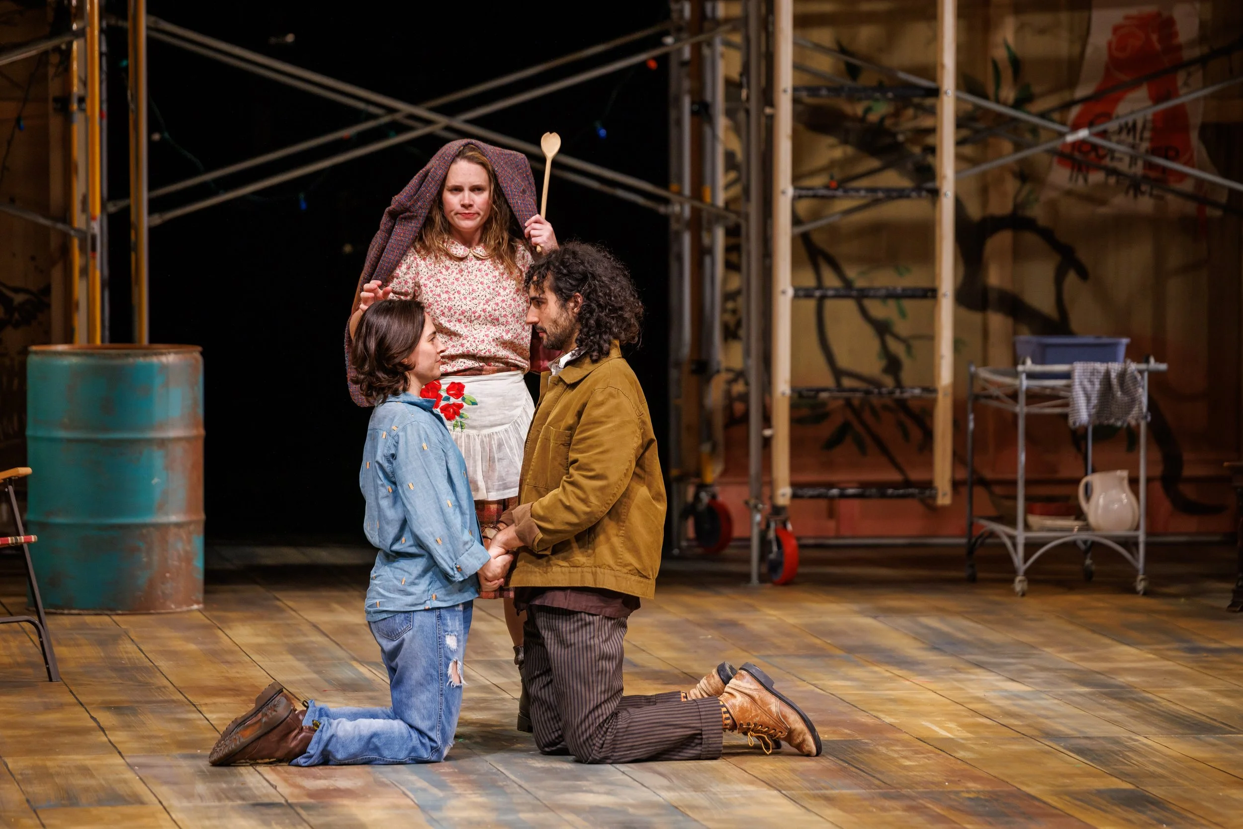 Here Gregory (Tiana Mudzimurema) can be seen inviting Romeo (Krosby Roza) and Benvolio (Marlon Burnley) to the Capulet's annual feast. The invitations used later became photo booth props for the party scene. Photos by Peter Ringenberg.