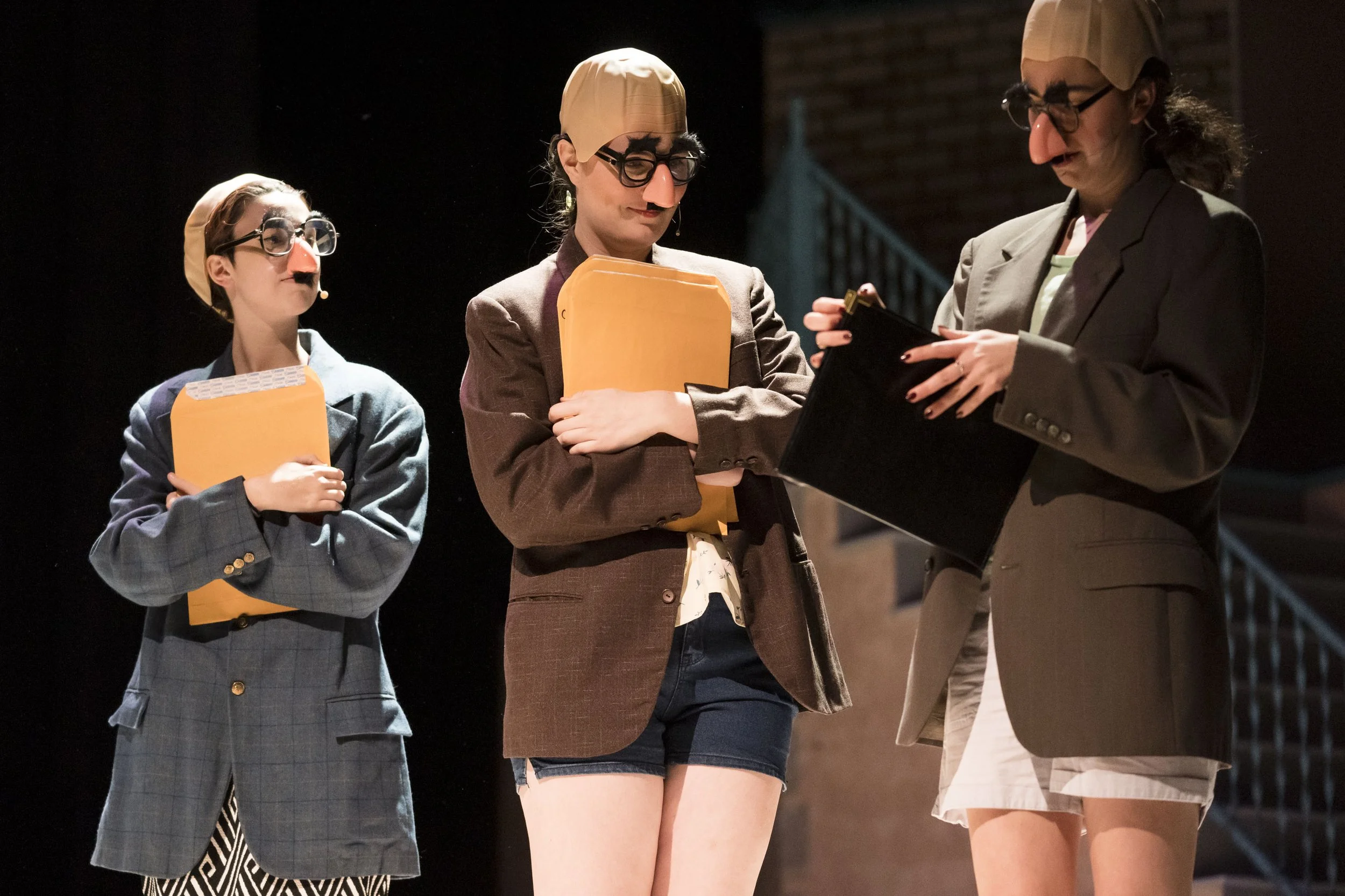 Lady Capulet (Carolina Vargas) and the Nurse (MaConnia Chesser) can be seen showing Juliet (Josie Mi) her wedding dress. Shopping bags sourced from designer boutiques during a day trip to Chicago. Photos by Peter Ringenberg.