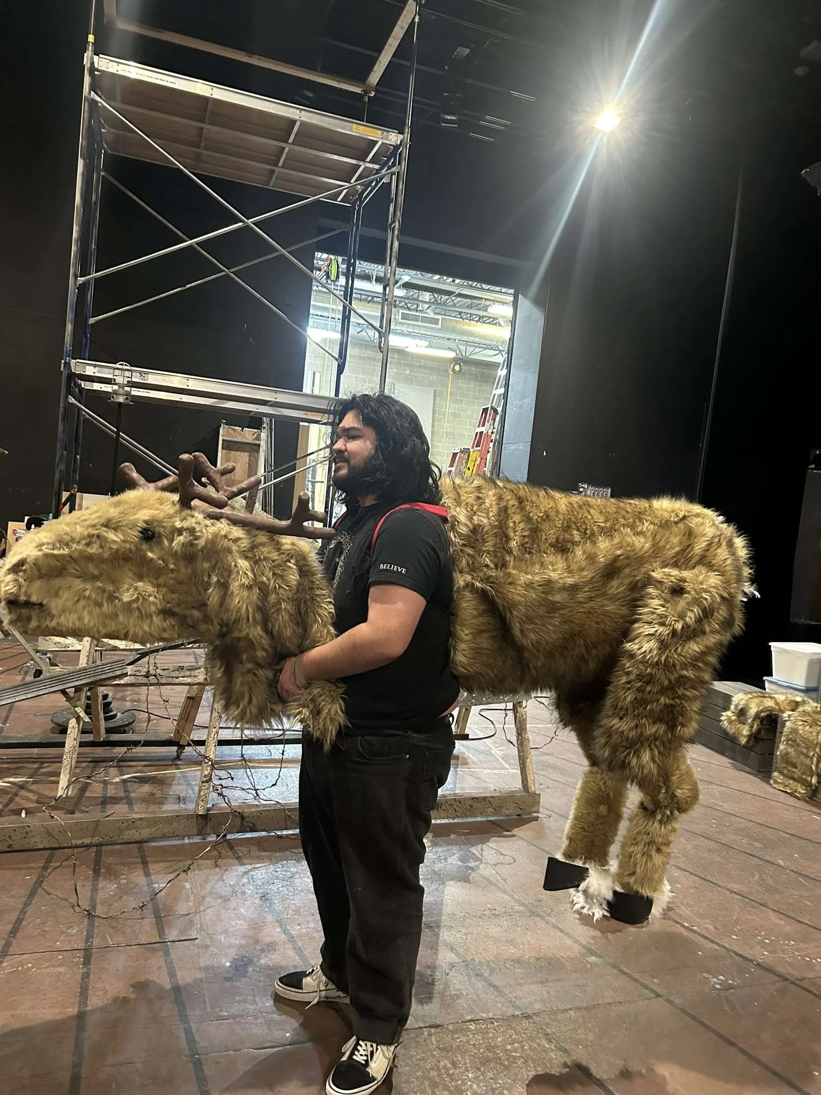 Photos of my build process for a reindeer puppet used in a variety of events for the South Bend Civic Theatre, including a parade, character breakfast, and others. This puppet was made for less than $150, using leftover materials from Finding Nemo Jr. This puppet also had its legs move and walk alongside the actor, performance photos pending.